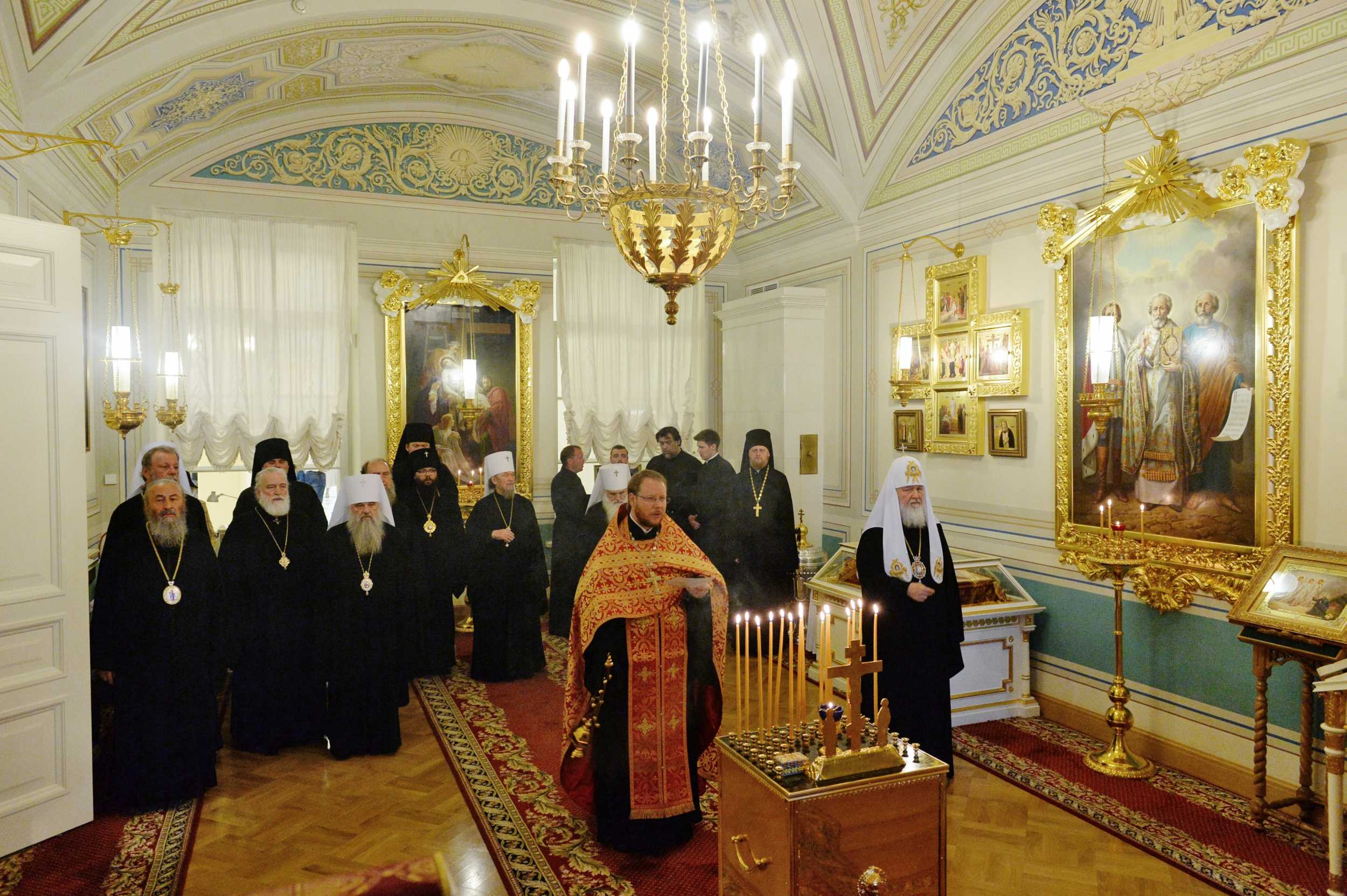 «Приветствую всех членов Священного Синода на очередном заседании в городе Санкт-Петербурге в историческом здании, в котором собирался Святейший Правительствующий Синод в Российской империи.