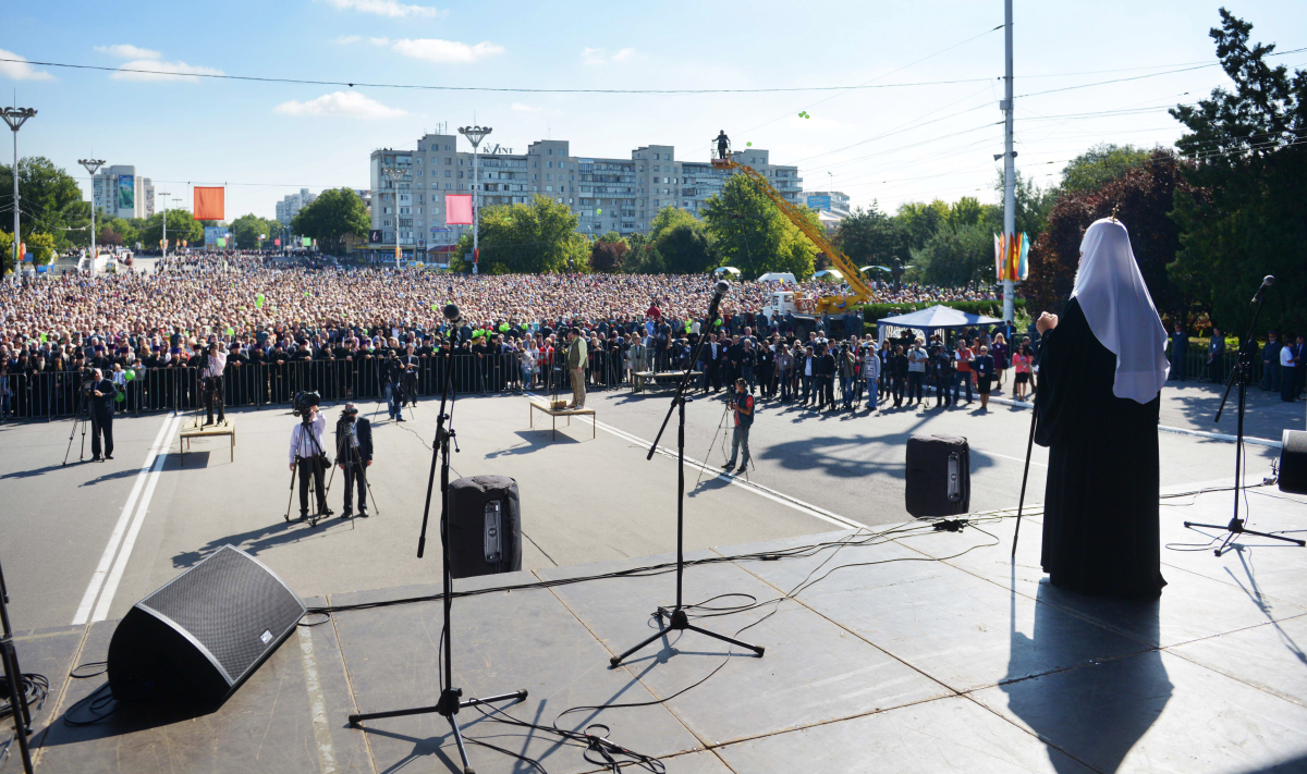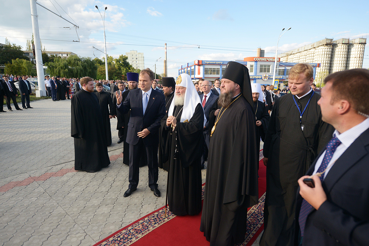 Я высоко ценю тот диалог, который имел место с государственной властью Молдовы, с владыкой митрополитом и епископатом Православной Церкви Молдовы и с приднестровским руководством. Я глубоко убежден в том, что, несмотря на трудности, которые существуют, вера молдавского народа, вера многонационального приднестровского народа, единая Церковь, которая соединяет оба берега Днестра, — что все эти факторы непременно помогут найти, в том числе, и политические развязки очень непростой проблемы, которая досталась нам от прошлого. Она связана с распадом Советского Союза — с огромным событием геополитического значения. По логике вещей, этот распад должен был сопровождаться еще большим числом конфликтов. Но Господь сохранил нас от этого. Но это не значит, что те конфликты, которые существуют, должны оставаться вечно. Поэтому я всех призываю к миру, к взаимопониманию, к попытке посмотреть на проблему ближнего не только с точки зрения своих собственных политических или экономических интересов, но и понять позицию другой стороны. Глубоко убежден, что открытый, искренний диалог, который учитывает разные точки зрения, способен стать реальным, действенным механизмом, в том числе и для решения приднестровской проблемы.